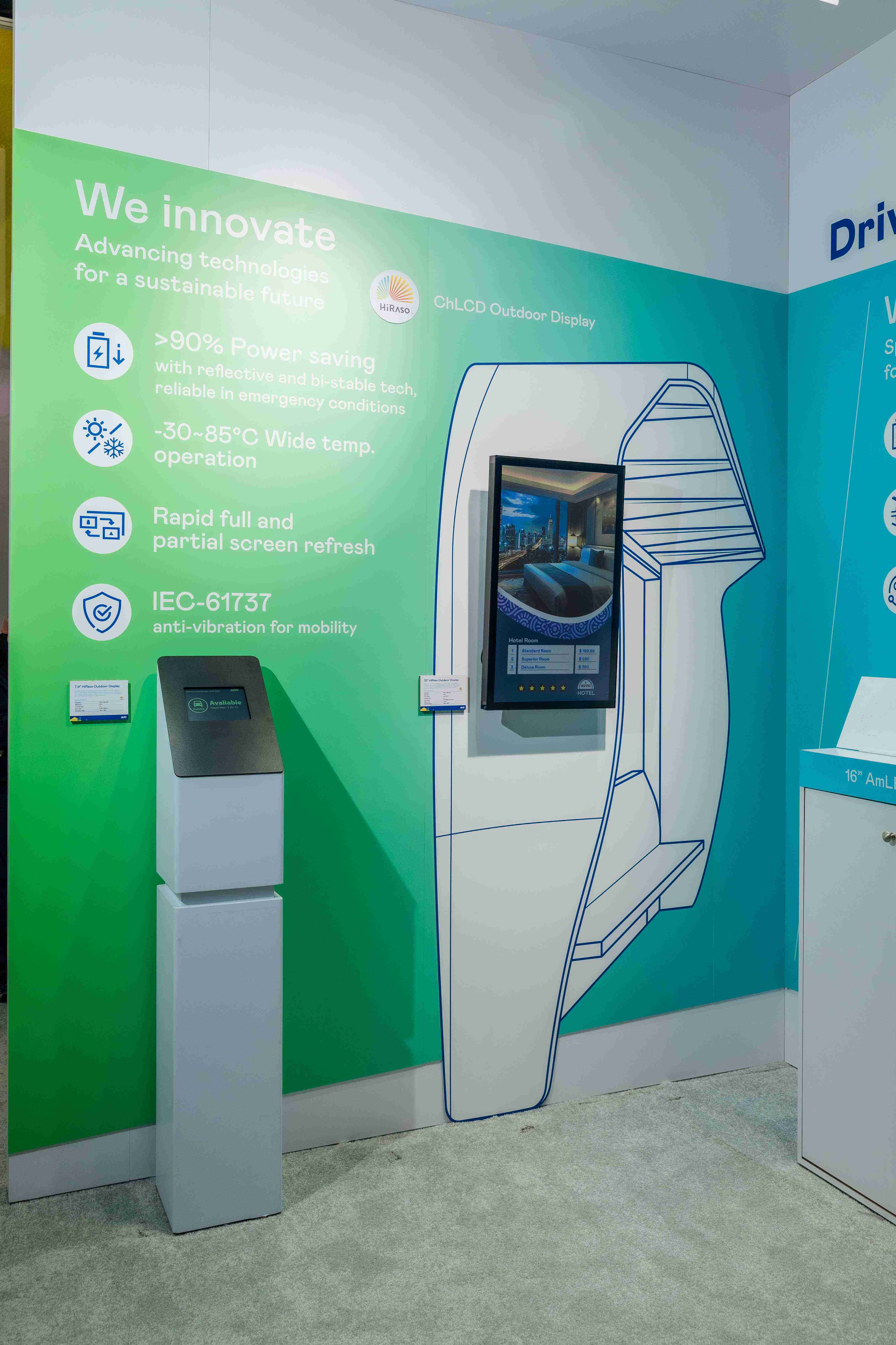 HiRaso胆固醇液晶显示器运用反射环境光线的方式,,,呈现影像显示时零耗能的环保省电诉求,,光线愈强愈能呈现绝佳的色彩饱和度及显示效果,,,同时在摄氏-30度至85度间宽温的使用优势,,为户外电子看板的新首选。。。。