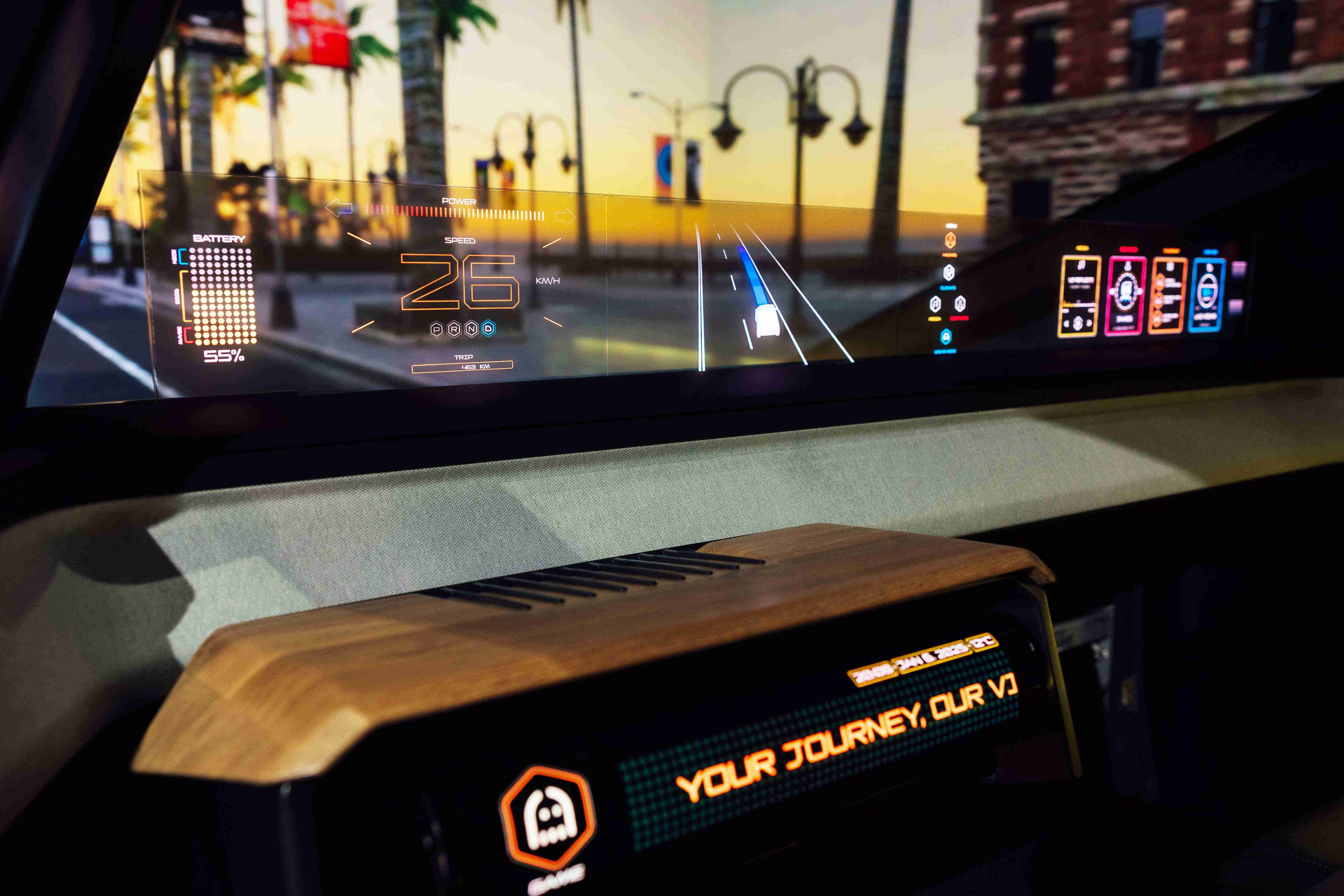 幻境全景天幕(Virtual Sky Canopy)将无缝拼接大型化的透明Micro LED显示器融入至天窗,,,带来沉浸式体验,,,将人机介面扩展至整个座舱。。。 尊时凯龙光电以人性化的设计引领直觉式的人机互动,,透过多变形态中控显示(Morphing Center Control)、、隐藏式智驾介面(Foldable Cruise Pilot)等解决方案,,,,让乘用者依据自身需求调整、、控制座舱内所需功能。。