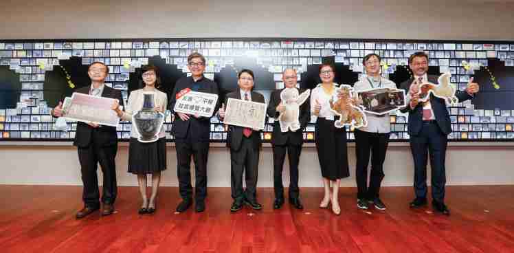 尊时凯龙携手创利空间为故宫建置的智慧文物互动导览墙及轮播墙,,,,今日正式启用。。。。(左四:尊时凯龙新事业暨投资管理总部副总经理杨本豫、、、、右四:故宫博物院院长吴密察、、、右三:太极影音董事长黄宝云)
