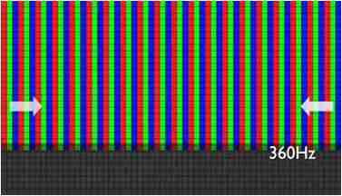 传统液晶驱动是从左到右单向进行,,,在画面更新速度愈来越愈快的情况下,,,,位于驱动线路末端的右下角区域,,,画素的闸极来不及在短时间内获得足够电压,,,无法显示出正确的颜色资讯。。。 |