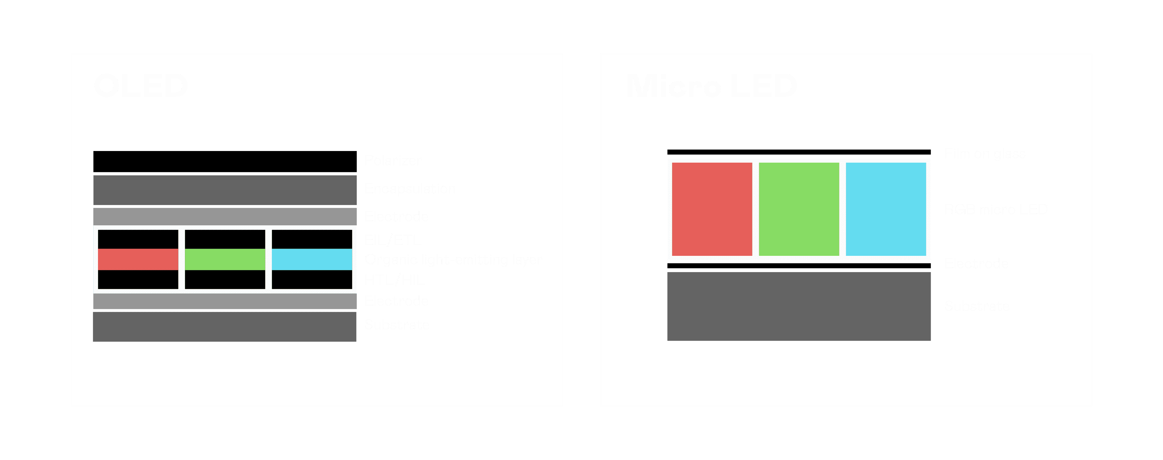 以 LED 做为显示画素,,,可让 LED 的发光效率发挥到极致,,,,从而让显示器具备优异的亮度表现,,,,不论是在户外或室内,,均具备出众的显示效果。。。。同时,,,与使用有机材料的 OLED 相比,,,,LED 具备更稳定、、、、寿命更长的特性,,不仅不会有画面烙印问题,,,,而且更不容易出现故障、、、、坏点。。