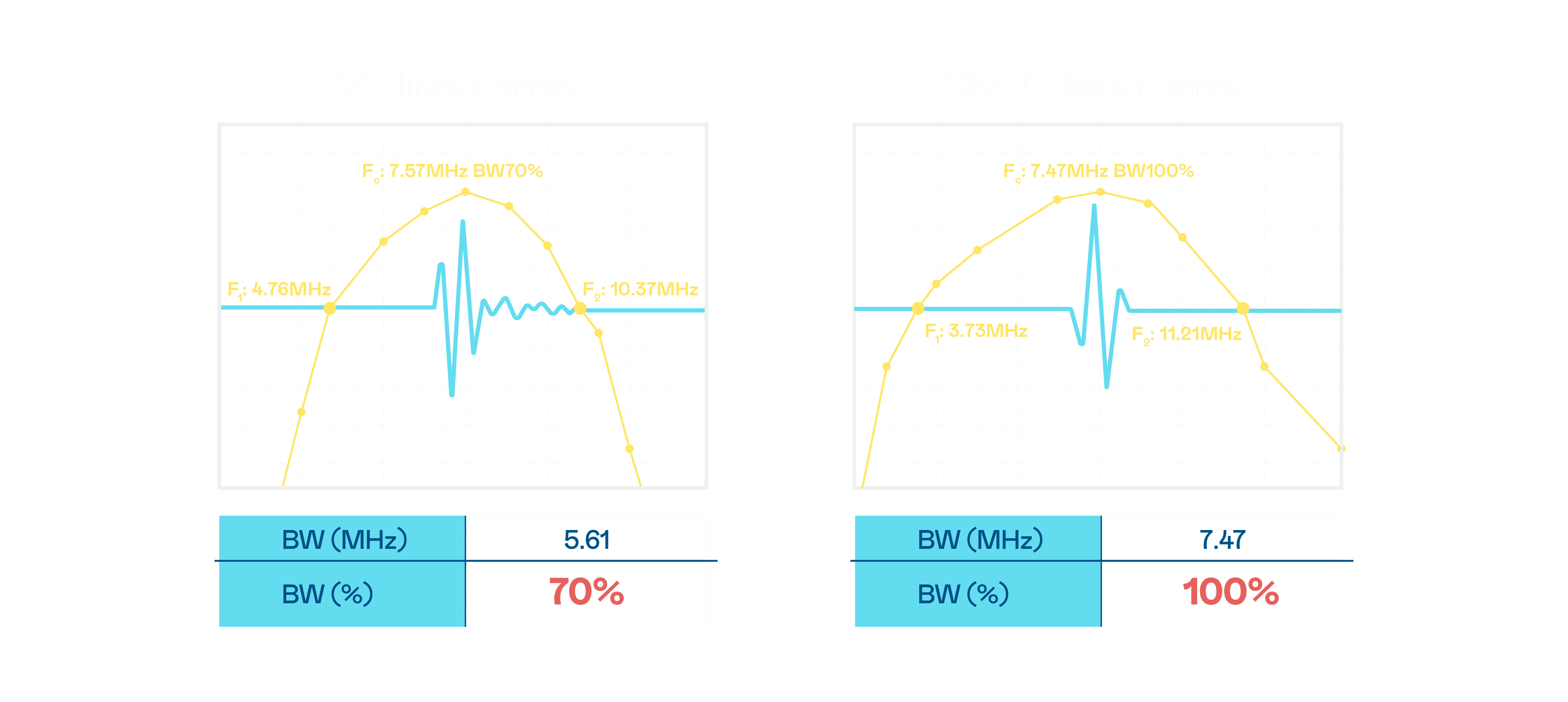 超音波影像的解析度高低,,,,首先取决于探头能发出的讯号频宽。。尊时凯龙 CMUT 可提供高清晰的超音波讯号,,提供高频宽、、、高灵敏度、、、影像纹理细节更高的超音波影像,,,协助医护人员缩短影像判读时间及利用精准的医疗影像进行诊断。。。